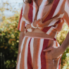 Lightweight, breathable, and effortlessy stylish, the Amalfi shorts are made in Paris, from eco-friendly cotton, linen fabric. The signature stripes evoke summer days by the italian sea. With a flat front and elastic back waistband plus side slits for ease, this piece offers both comfort and elegance, from the city to the coast.