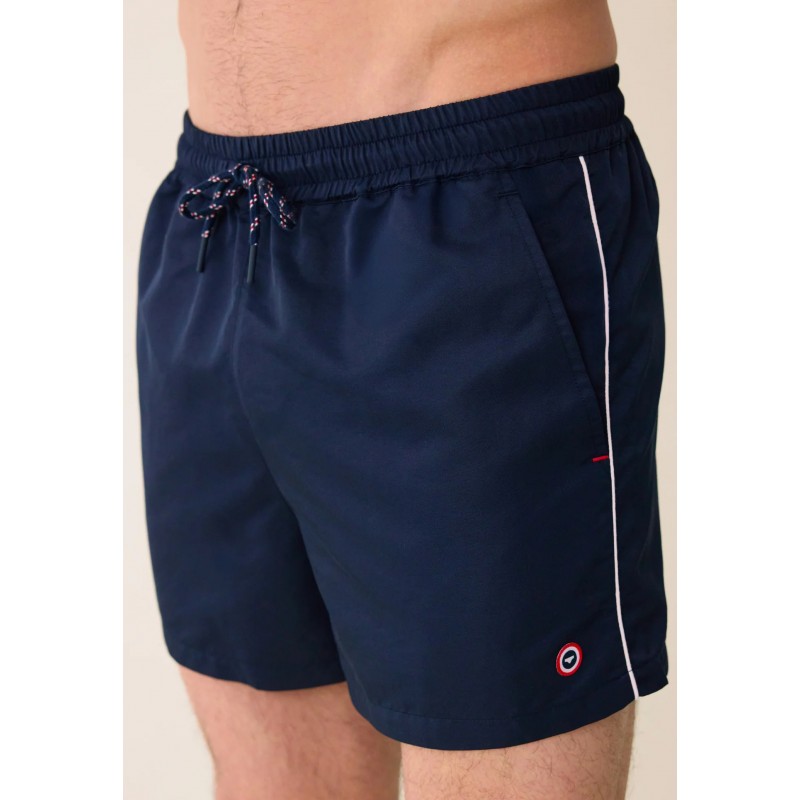 At last, 100% made-in-France swim shorts for under €80! No compromise on quality, comfort or style. We love the elasticated waistband, the drawstring, the integrated briefs in ultra-soft microfiber, the small contrasting bias on the side, and the famous embroidered cockade.