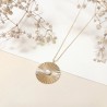 A round necklace, easy to wear whatever the outfit. The work of the disc is such that it perfectly reflects the light. The fine stone in the center is a discreet mother-of-pearl that will bring a precious touch without weighing down the necklace.