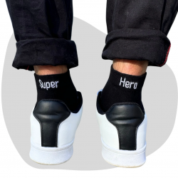 LE cadeau parfait pour un proche, un ami, un super papa, avec ces jolies paires de chaussettes à hauteur de cheville : idéales pour afficher un message juste au-dessus de la basket ! Le gros truc en plus c'est que ces chaussettes peuvent être dépareillées, et on peut mixer les messages à l'infini !