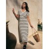 Nouvelle variante de la robe classique Saint James en jersey à rayures marinières, on craque pour ses petits détails pleins de modernité : sa jolie longueur, sa fente côté ornée de jolis boutons, et son encolure en V ultra féminine. Un indispensable de votre garde-robe estivale !