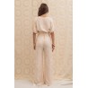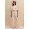 Le Top Anna, à la coupe cache-cœur, se distingue par sa ceinture large à nouer qui sculpte la silhouette avec un drapé parfait. Sa forme chauve-souris et ses manches bouffantes créent un volume subtil, apportant une touche d'élégance naturelle. Confectionné dans un jacquard fluide à motif fleuri crème. Polyvalent, il se porte noué à l'avant pour un effet cache-cœur ou dans le dos pour une silhouette plus épurée, associé au pantalon Gaia.