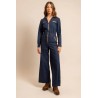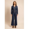Coup de cœur cette saison pour la combinaison parfaite : celle qui met en valeur chaque détail de votre morphologie, mais sans en avoir l'air ! Une pièce simple en apparence, mais où chaque détail a été réfléchi : les zips dorés, les coutures contrastées, la taille joliment marquée, la jambe patte d'eph pour un look so 70's. Et pour un look folk à souhait, associez là avec le gilet Janis !