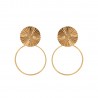 Boucles d'oreilles Horizon avec un anneau pendant. La partie haute s'attache au lobe de l'oreille pour donner un maximum de reflet grace à son côté strié tel les rayons du soleil. Retrouvez d'autres modèles de la gamme dans notre sélection.