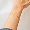 Un modèle de bracelet qui saura faire son effet par sa simplicité. Un anneau rigide doré à l'or fin 24 carats sublimé d'une petite nacre centrale pour la touche de féminité.